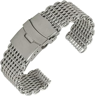 Unisex Mesh Edelstahl Uhrenarmband, Schnellverschluss Haienetz Edelstahlarmband Faltschließe Uhrenarmband 22mm