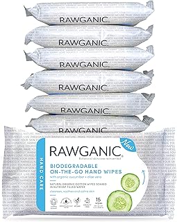 RAWGANIC® - BIO Hand Wipes – Jederzeit saubere Hände - Feuchte Baumwolltücher für unterwegs - Mit Aloe Vera und Gurke (6 Päckchen)
