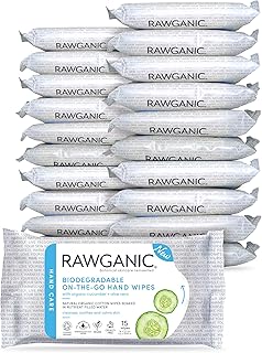 RAWGANIC® - BIO Hand Wipes – Saubere Hände geben Keimen keine Chance - Feuchte Baumwolltücher für unterwegs - Mit Aloe Vera und Gurke (20)