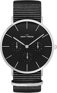 Armbanduhr Silber Schwarz für Damen & Herren, Chronograph-Style-Uhr mit Textil- Stoff- Nylon- NATO-Armband oder Edelstahl-Metallarmband Ø 38 MM