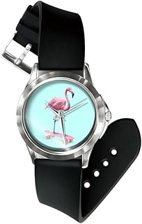 AMOYER Frau Uhren Flamingo Quarz Analog Nein Zahl runden Zifferblatt Armbanduhr