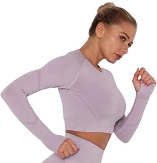 Sport Oberteil Damen Langarm und Kurzarm Fitness Crop Top Bauchfrei Laufshirt Sporttop Kompression Yoga Gym Crop Top Rundhals