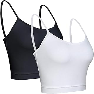 BQTQ 2 Stück Crop Tank Top 2 Farben Cami Crop Top mit Spaghetti Träger Basic Top für Damen