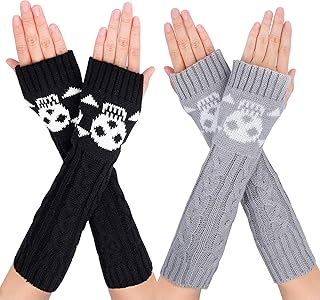 1 Paar lange fingerlose Handschuhe, Armstulpen, gestrickt, Daumenloch, dehnbare Handschuhe, Fäustlinge, Armstulpen für Frauen und Mädchen