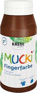 Kreul 23211 - Mucki leuchtkräftige Fingerfarbe, 750 ml in braun, auf Wasserbasis, parabenfrei, glutenfrei, laktosefrei und vegan, auswaschbar, vermalbar mit Pinsel, Schwamm, Spachtel und Fingern