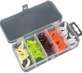 DEHUA 50 Stücke Künstliche Bienenmaden für Angeln 2cm, Forellen Köder Angeln Set in Tackle Box, Kunstmaden in 5 fängigen Farben Angeln zum Fishing, Gummi Forellenköder Powerbait Angeln