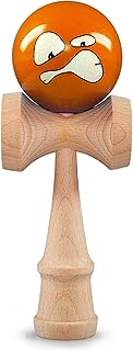 Kendama aus echtem Buchen-Holz, Original Japanisches traditionelles Holz-Spielzeug, Modell: Orange mit Gesicht Angry oberflächenlackiert, Kugel-Spiel, Geschicklichkeits-Spiel